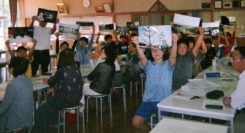 学校側の要望により、修学旅行に「写ルンです」を携帯してもらうことに。初回授業はその前提で行った。撮影に気を取られて観光客などにぶつからないよう、安全にカメラを使用するための注意点を説明。カメラの紛失についても用心するよう念を押した。2回目は、保護者参観をかねての授業となった。大伸ばしされたプリントについて1点ずつ、残りの26コマについても時間の許す限り講評。鑑賞する目を養うことが大切だと実例を挙げて説いた。児童らは「勉強になったことを活かして、またフィルムカメラを使ってみたい」などと、感想を述べていた。