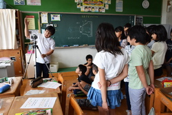 南舞岡1組小学校に隣接する舞岡公園を毎年4、5回観察する授業が行われているので、今回はカメラで挑戦してもらった。2回目の授業では、どうすれば良い写真になるかを四つ切の写真を見ながら皆で話し合った。「いい工夫や失敗は次ぎに繋がる」「ボクの写真の良いところをいってもらい嬉しかった」「よく撮れるコツを言ってもらったので、色々なものに挑戦したい」「写真は表情や気持ちが伝わって来る事を学んだ」等、時間をオーバーするほど熱気があった。10日後の学校祭に4年生全員の写真が展示され、父兄からの賞賛の言葉があったと学校から連絡があった。