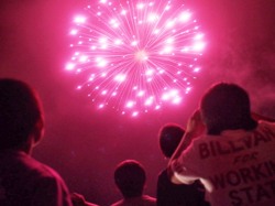 サマーキャンプ内にて開催の1回目。写真家の仕事について話し、フラッシュの注意点を交えながらカメラの使い方を説明。撮影実習に取り組む。2日間のサマーキャンプは内容が盛り沢山。夜、保護者や地域の方々による復興を願うサプライズ花火も打ち上げられた。「写ルンです」での花火撮影は非常に難しいが、児童達はファインダーを覗き、熱心にシャッターを押していた。発表時には写真家が選んだものだけではなく、児童にもお気に入りの一枚を選んでもらう。小さく写った花火の写真を指差し、「きれいに撮れて嬉しい」という素直な言葉に感動を覚えた。
