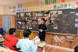 家族旅行での思い出の写真が多い中、普段の生活の中での家族やペットの写真を撮ってくる子ども達も多く、四つ切ワイド作品一点一点の感想や撮った人の気持ちを引き出す授業を行った。最後に鶴居村なので、これを機会にタンチョウなどにも目を向けて貰えると良いと話した。 (記・撮影/佐藤臣里)