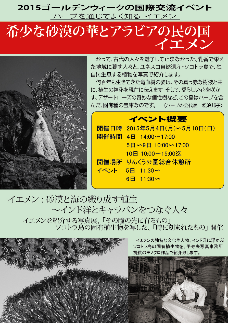 開催概要: 2015ゴールデンウィークの国際交流イベント- ハーブを通じてよく知る イエメン