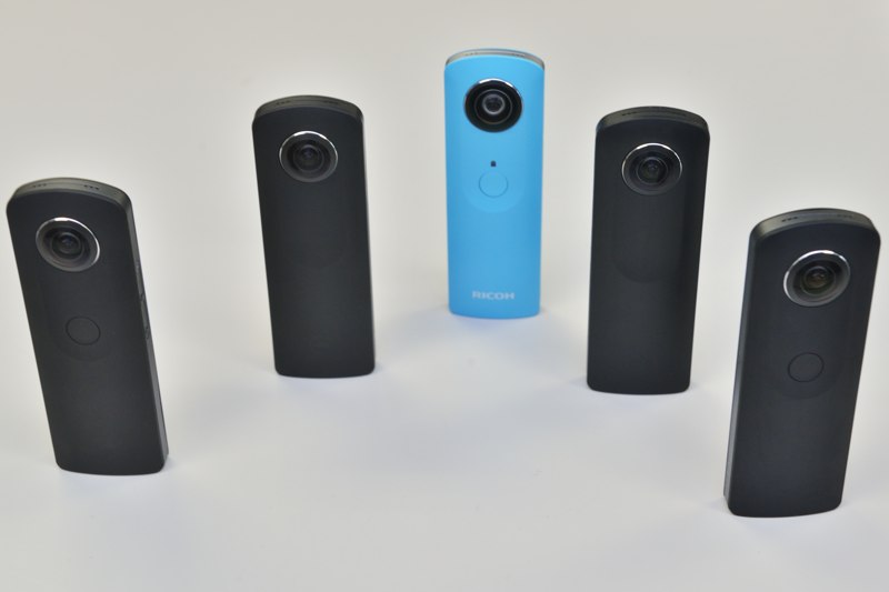 勢ぞろいした歴代THETA(撮影:加藤雅昭)