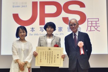 2015年6月13日、上野・東京都美術館講堂で13時より第40回2015JPS展表彰式が開催されました。「時を経て」を撮影した大浦美保さんは文部科学大臣賞を受賞し、200人を越える出席者の中、文化庁芸術文化調査官の林洋子氏より賞状を、熊切圭介会長より記念の盾と副賞を受け取りました。