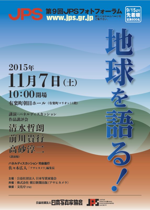 2015年11月7日10時半から有楽町の朝日ホールで第9回JPSフォトフォーラム「地球を語る!」がはじまりました。