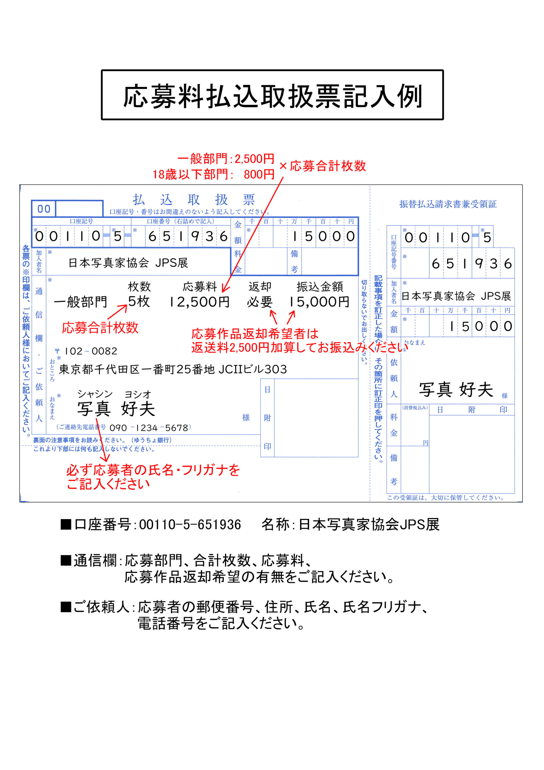 5.応募作品の返却を希望される方は、受付手数料納入の際、返却料 2,500円(枚数に関係なく)を加算してお振込み下さい。※海外からの応募の場合は返却不可となります。応募作品の返却は6月下旬から7月上旬を予定しています。