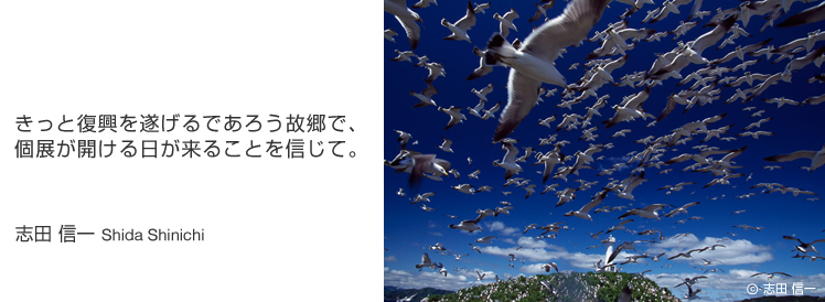 今回の写真は、こうした経緯をたどり日の目を見ることになったものです。そして、写真展を開いて私の写真を多くの人たちに見てもらいたいというこれまでの夢が、図らずも形を変えて実現されました。津波に遭遇したことはとてもつらく悲しい出来事ではありますが、恨み辛みはいいません。すべてを受け入れ、立ち直って前向きに生きるこの土地の人たちの姿は、まさに私が撮り続けてきた、自然と共に生きる海の男たちの姿そのもの。私はそうした光景を見る度に、津波で流されてしまった多くの写真に負けないものを撮りため、きっと復興を成し遂げるであろうこの故郷で、いつか個展を開きたいと夢をふくらませています。
