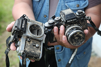 津波をかぶったわが家は、家財道具が一切合切流され、自宅に流れこんでいるのは泥をかぶったよその家のものばかり。津波のすさまじさを痛感しました。しかし、あらゆるものが瓦礫と化してしまったなかから、妻が偶然にも私の大事にしていた泥だらけになったカメラと写真やフィルムの一部を見つけ出してくれていました。そして娘が「お父さんが大切にしていたものだから」と、捨てずにとっておいてくれたのです。さらに2か月後には、私の大事な作品やネガ・ポジが入った泥だらけの段ボール箱を、「志田さんのものだろうと思って」と見つけた人が届けてくれました。