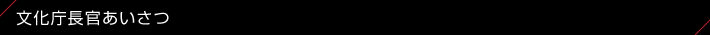 文化芸術は、私たちの心に安らぎと力を与え、明日への希望を与えてくれます。また、文化芸術の持つ創造性は、新しい価値を生み出し、人々の心をつなぐ機能も持っています。文化庁におきましては、文化の力で日本の復興と発展に寄与するべく力を尽くして参りたいと存じます。御来場の皆様方におかれましては、今後とも日本の力強い復興に御力添えをいただきますようお願い申し上げます。