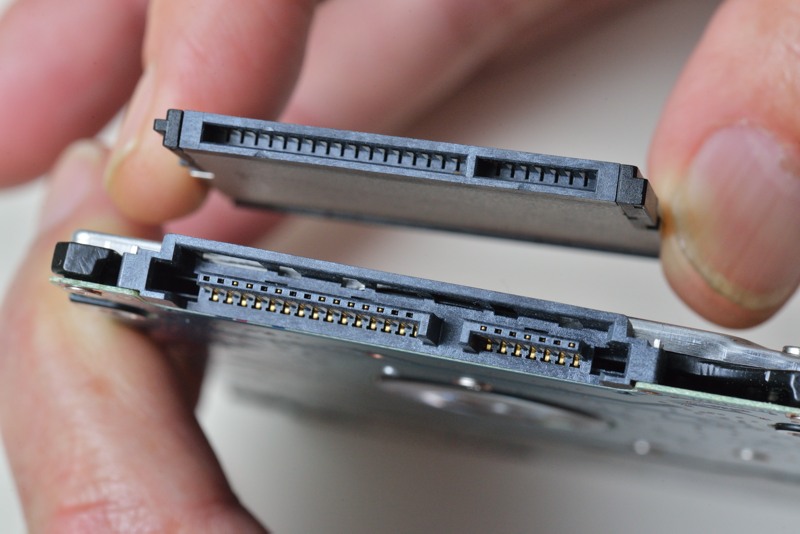CFast2.0(Serial ATA 3.0規格)のインターフェース(上)とSerial ATA 2.0のHDDインターフェース(下)との違い