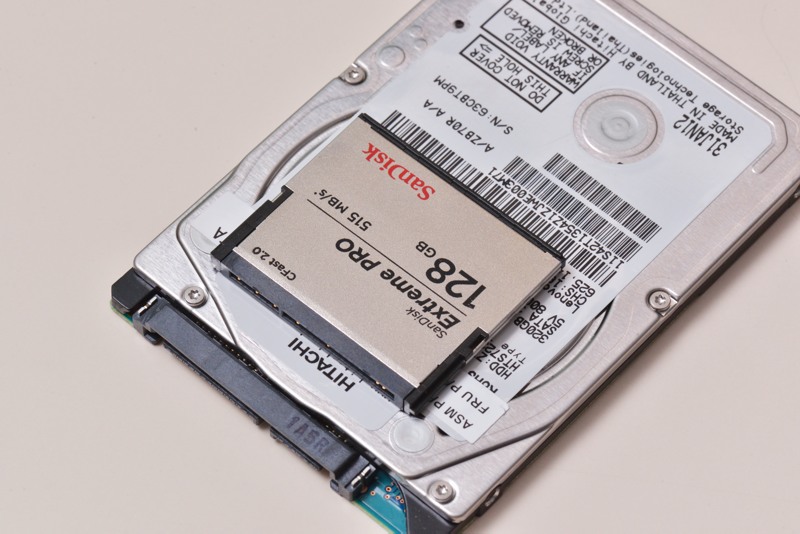 CFast2.0(Serial ATA 3.0規格)カード(上)とSerial ATA 2.0のHDD(下)との違い