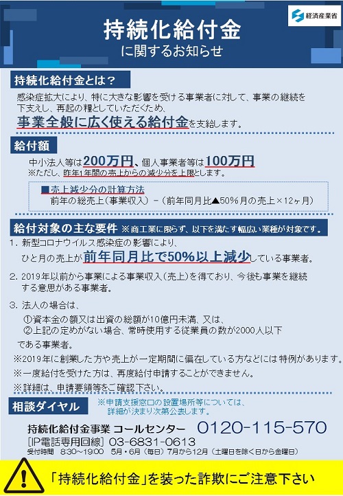 新型コロナウイルス関連「持続化給付金」の受付が開始されました!
