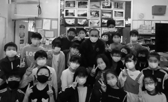 写真学習プログラム実施に先立って学校訪問。担当の高木教諭(図工)と打ち合わせの結果「私の中のわたし」のテーマを設定。1回目の授業後半で、フィルムの5枚程度を撮影練習にあてた。その後はカメラを家に持ち帰り、日常の中で感じた「1日1枚」を自由に撮ってもらうこととした。2回目の授業は四切ワイドプリントを全て教室前面のボードに展示。一人ずつ順に作品講評をおこなったのだが、各自が意図して写した写真だけに、自作への思いを込めてしっかりと自分の言葉で発表していたのが頼もしかった。このクラス全員がレンズ付きフィルムカメラを使うのは初めてで、写真が出来上がるまでの期待感など、スマホやデジカメとは違う楽しみ方を感想として伝えてくる児童も多くいた。(記/渡辺千昭、撮影/高木教諭)