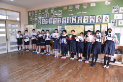 開小学校の学区内にある新開(しんがい)地区では、地域住民が神社での奉納能楽が毎年開催され、その稽古には小学生も大人に混じって参加している。こうした下地のせいか、今回の5年生13名は物怖じせず、自分の意見を積極的に表せる児童達だった。そのため一方的に説明をするのではなく、児童とのやりとりを中心とした能動的な授業となった。