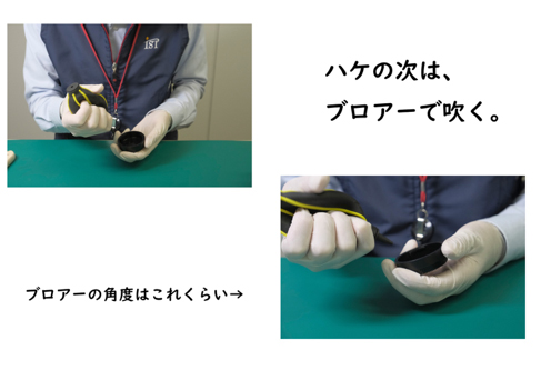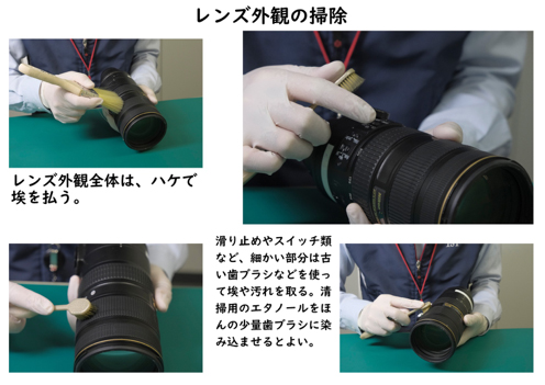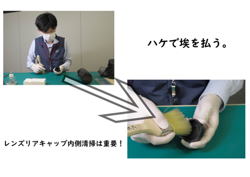 レンズの表面については、ハケでホコリをはらうと、レンズ表面が汚れてしまう場合がありますので、②~③の順番でおこないます。