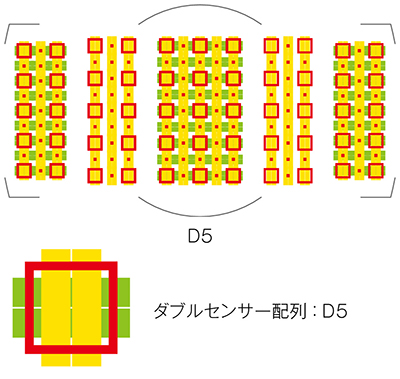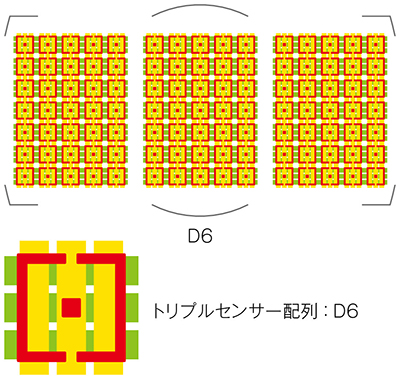 105点のフォーカスポイントはすべてクロスセンサーで、全点が選択可能。構図をずらすことなく、被写体のピントを合わせたい部分にAFでピント合わせができます。しかも、ひとつひとつのフォーカスポイントを縦横3列ずつのトリプルセンサー配列とし、AFエリアをD5比約1.6倍の高密度でカバー。小さな被写体もより確実に捉えることができます。