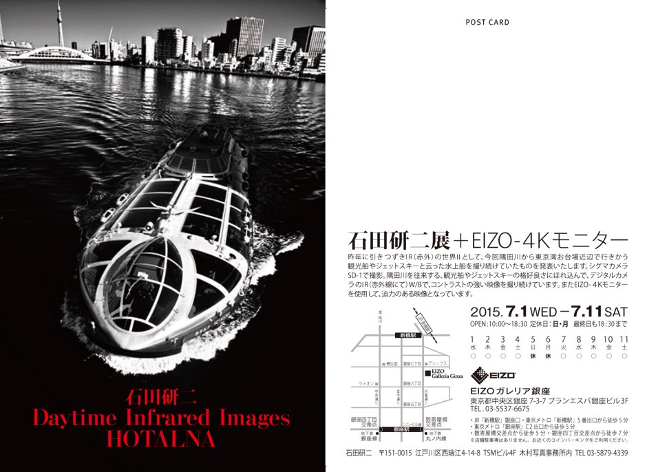 昨年に引き続き石田研二展 IR(赤外)の世界IIとして、今回隅田川から東京湾お台場近辺で行きかう、観光船やジェットスキーと云った水上船を撮り続けていたものを、発表いたしました。