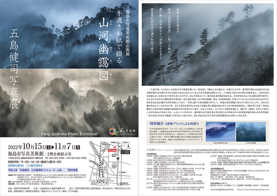 【展覧内容】靄が織り成す幽玄な水墨画的モノトーンな世界観を徳島県伝統阿波手漉き和紙で表現した全20作品