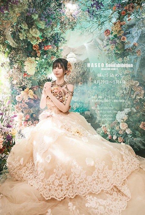 今回の展示では、日本を代表する人気コスプレイヤーのえなこさんにご協力いただいた作品を初め、会場全体をHASEOの創作世界に装飾を施し、写真作品だけでなく願いを込めた物語や空間を五感を通じて体感していただける内容となります。