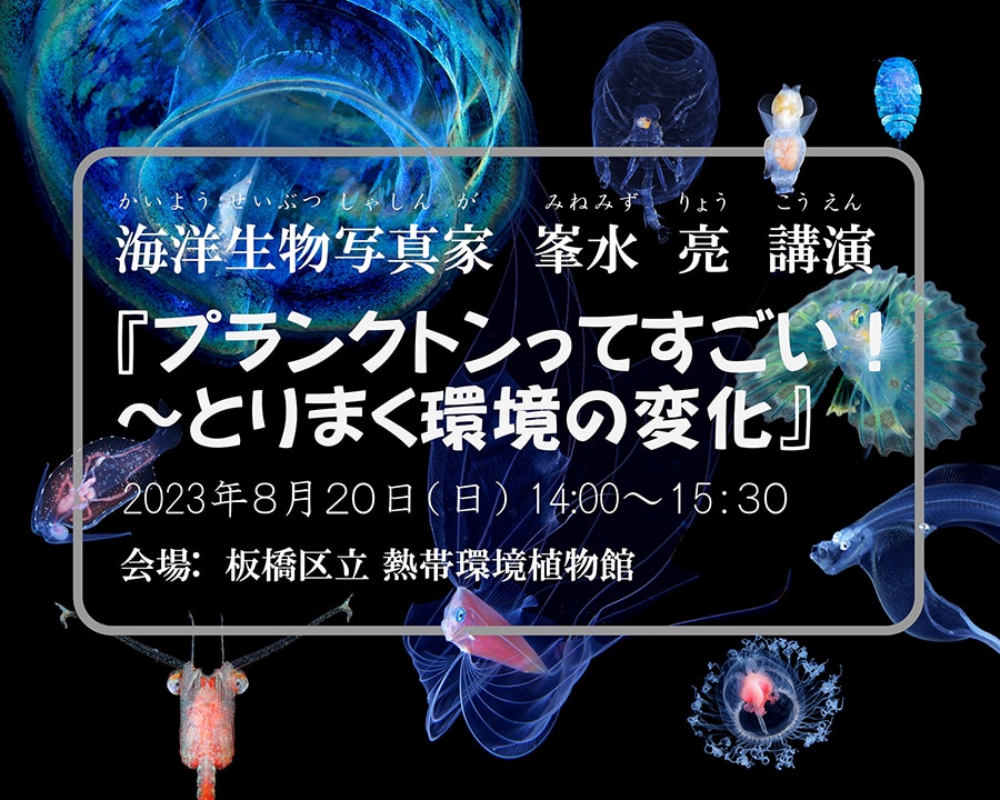 峯水さんが世界の海で撮影された写真を鑑賞しながら、撮影エピソードやプランクトンの魅力などお話しいただきます。
