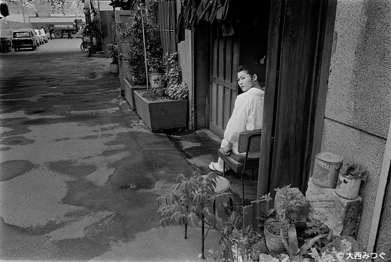 大西みつぐは1952年、東京・深川に生まれました。1970年代より自身の暮らす東京の下町や湾岸地域を中心に、市井の人々の姿や移りゆく風景を撮り続けています。日常に根ざした視点と時代感覚を併せ持つその作品群は、日本のスナップショット写真における重要な流れを形づくった作家のひとりとして、現在も多くの写真家や表現者に影響を与え続けています。