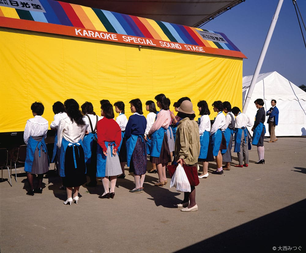 休日の市民プールや公園の賑わい、開発前の剥き出しの鉄塔や空き地、浜辺に出現するアベックたち、街角に佇むハイソックスの少年。6×7判のカラーフィルムで撮影された3つのシリーズは、バブル景気という奇妙な時代における市井の人々の生活と振る舞いが、同時代の一員でもあった大西によって、克明に記録されています。