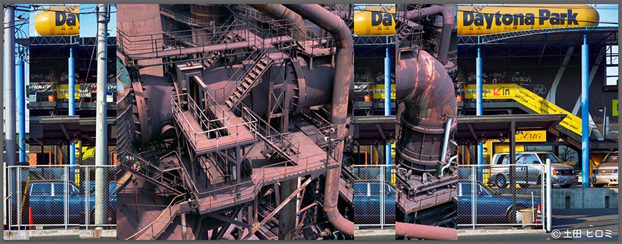 基幹産業の生産装置とロードサイト店舗の消費の風景を一つの空間にコラージュすることで、日本人のケとハレの意識のキョリが見えてくると考えています。