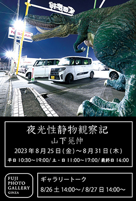 月が映し出す夜の世界。 私は公園で見かける動物、怪獣などの静物を追い続けている。この静物たちは昼間とは異なる表情を見せ、今にも動きだしてくるかのように私へ訴えかけてくる。そんな彼らの表情を見ていただきたい。