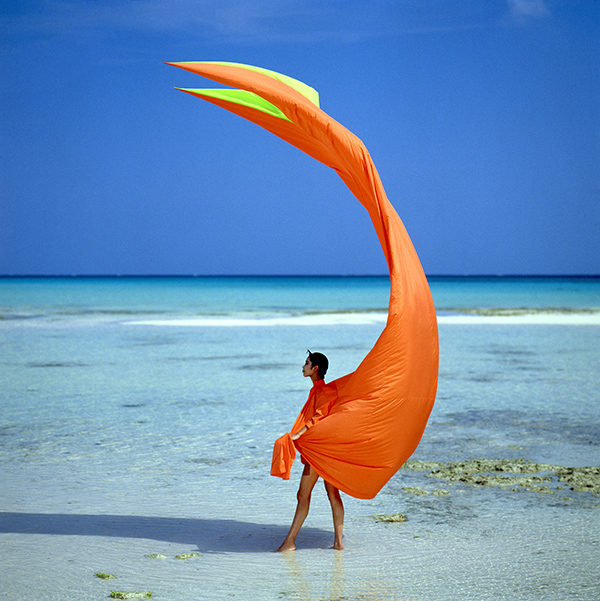 Photograph of one of Yoshiki Hishinuma’s breath taking fashions in Okinawa.