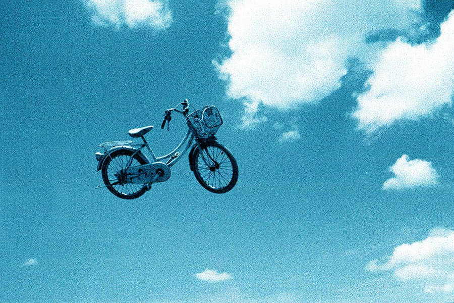 Flying Object は、役目を果たした物へのオマージュ!感謝をこめて空高く投げて撮影します。今だったら、コンピューターで合成するところかもしれません