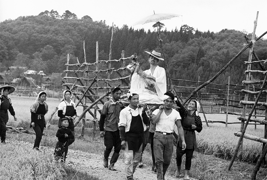 目的地は、土方の生まれ故郷に近い田代村というところに決めました。村では子供たちと戯れ、道端の農民たちに笑われ、赤ん坊を借りて田んぼを走りまわりました。そして、ほとんどの撮影は、電光石火のハプニングの連続で、この方法は映画でも、テレビでも、絵画でも、小説でもできない写真術の独壇場でした。私たちの撮影は、秋田から筑波山麓、柴又や亀有、巣鴨のとげ抜き地蔵、目黒不動尊境内へと場所を変えていきました。疎開先の米沢で撮影はしませんでしたが、それは、私の「記憶」だと感ずるものを「記録」すれば充分でした。そうした経緯で「鎌鼬」が完成したのです。