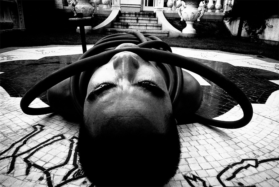 三島由紀夫を撮影するきっかけは、編集者を通して三島氏から撮影を依頼されたからでした。この時、「何故?私なのですか?」と尋ねたところ、三島氏が「土方巽を撮った写真、あれは良いね」と。私は直感的に、三島氏はダンサーになりたいのか?と思い、当時の助手の森山大道君に指示をして、氏の体にホースを巻きつけたり、木槌を持たせて脚立のうえからレンズを睨むように指示して撮影を行いました。