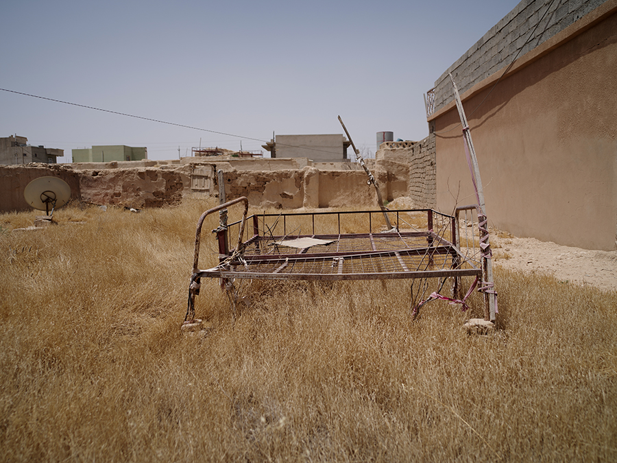 アドルが暮らしていたシンガル山麓のドグレ村の生い茂った庭に取り残されたベッド(2016年7月)©林典子