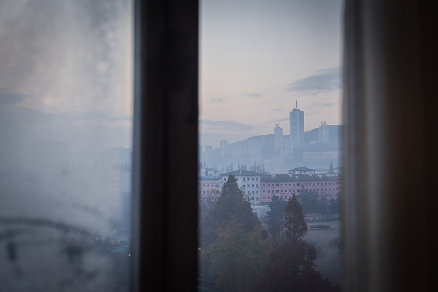 窓から見える朝鮮民主主義人民共和国、東部の元山市内の風景(2018年11月)©林典子