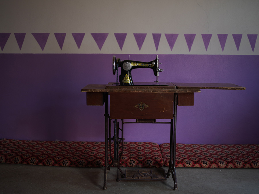 シンガル山麓のカナソール村に暮らしていたヤズディ女性が、1978年に結婚した直後に購入したミシン。2014年8月にISの攻撃によって村が奪還されたが、長年愛用していたこのミシンをイラク国内の避難先に運んできた(2016年7月)©林典子