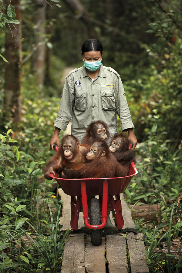 Orphaned orangutans on their way back from Forest School at Nyaru Menteng, Borneo. ©Mark Edward Harris