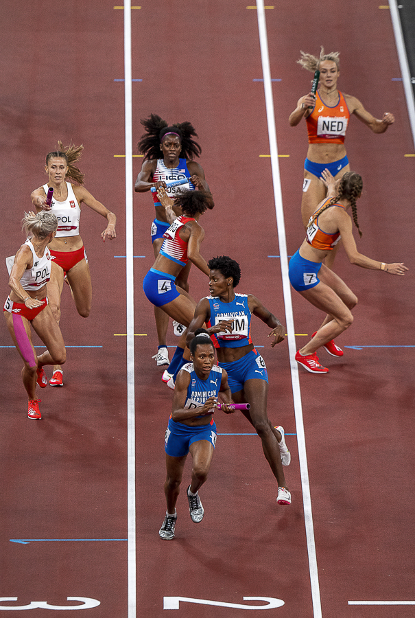 The intensity of the baton handoff was on display during the 4 × 400-meters relay at the TOKYO 2020 Olympics on July 31. ©Mark Edward Harris