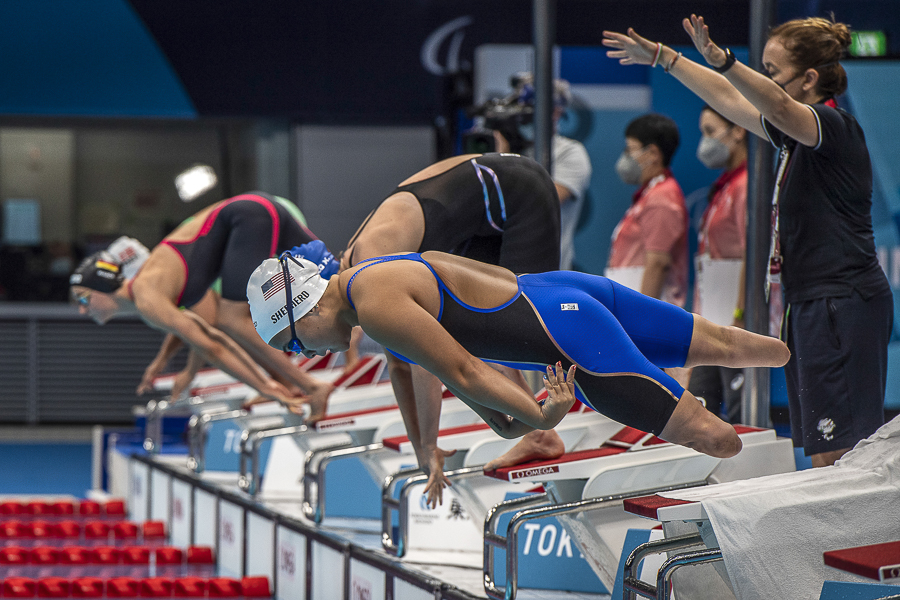Team USA swimmer Haven Shepherd takes to the air at the women’s 200m individual medley heat August 28, 2021 during the TOKYO 2020 Paralympic Games. ©Mark Edward Harris