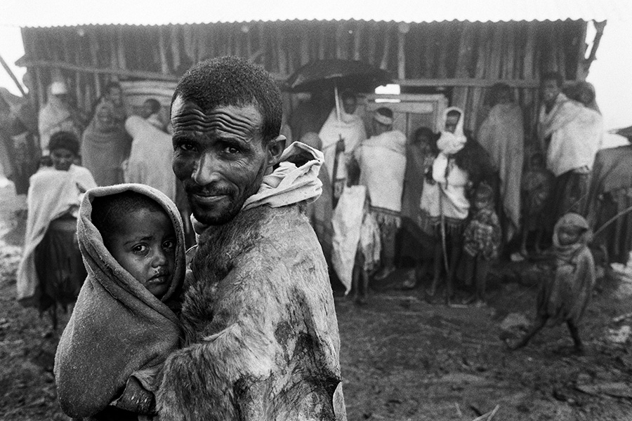 ラリベラという岩の教会群で知られる町から5日間、歩いて移動しました。疲労困憊で写真どころではない。そんな状態でようやく目的地の村にたどり着いたのですが、そこには白い衣をまとった人びとが、雨に濡れて寒さに震えながら到着を待っていたのです。300は下らない数の人がいました。その群集に分け入って、無我夢中でシャッターを切ったのです。