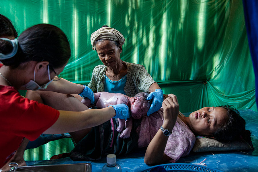 タイ国境、ミャンマー・カレン州の山奥にある難民キャンプで出産した女性 渋谷敦志 撮影(2010年)