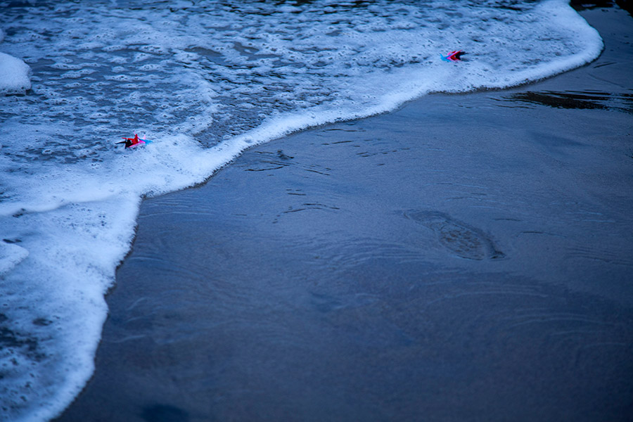 4月5日、原発へ少しでも近づこうと車で仙台を出発しました。福島県に入り、南相馬市の病院あたりでたまたま「萱浜」(かいばま)という標識が目に入ったのです。浜という一字を見て、「このあたりの海はどうなっているんだろう」とふと思い、海の方へ進みました。ある線を境に家並みが途切れ、視界が開けて海に出ました。そこが萱浜でした。その時、その前に陸前高田や気仙沼で見た光景と重なり、津波にすべてを押し流された場所であるという厳しい事実にはっと気づいて、胸がふさがれたのでした。世界の終わりの光景、世界のどこでもない場所にポツリと投げ出されたような気持ちでした。そこには人間が1人もいません。どこにいったのだろうと、何を撮るともなく、がれきに向けてシャッターを数枚切ったその時、二人の男性が歩く姿を見つけ、近づき、勇気を出して話しかけました。「何してるって? 見りゃわかるだろ。人を捜してんだよ」。外部から来たぼくを敵と見なすような激しい怒りに満ちた目でした。その時、カメラは人と人を絶縁するただの無機物の塊でしかないと感じたものでした。ひと言わびて引き下がろうとしたのですが、その人が「で、どっから来たの? 東京?」と逆に切り出してきた。それが上野さんとの最初のコミュニケーションでした。