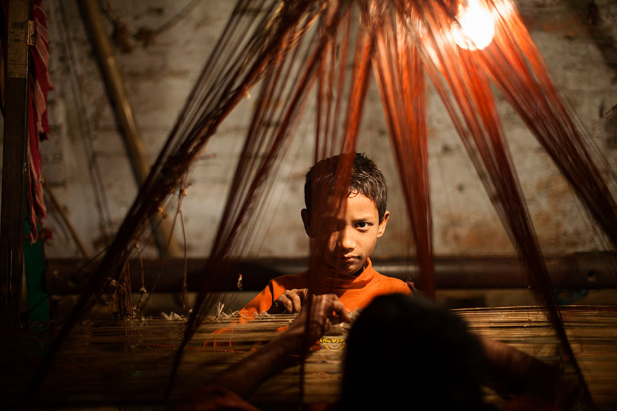 バングラデシュ、機織り工場で働く子ども 渋谷敦志 撮影(2009年)