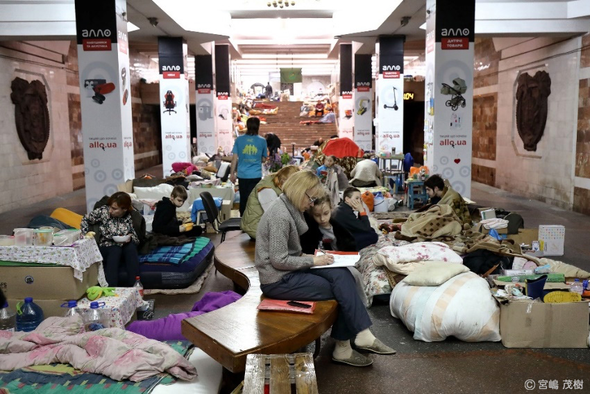 サルトゥフカ地区にはヨーロッパ有数の団地群がある。しかし、連日のロシア軍の砲撃でインフラも破壊され、人が住めぬゴーストタウンと化しした。住民はより安全であたたかい場所を求めて、地下鉄駅へ逃れた。