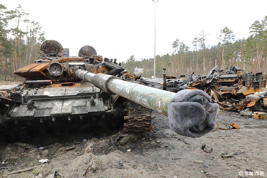 誰がやったのか。ロシア軍のT―72戦車の125ミリ滑空砲の砲口に、シャプカ(ロシア軍の冬用帽子)がかぶせられた。その持ち主が殺されたのか、捕虜となったのか、ようとして知れない。