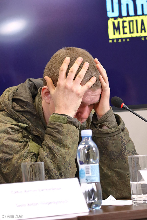 さらにヒゲも剃られ、ペットボトルからグラスに水を注ぎ口にするしぐさからも厚遇されている印象を受けた。5人はいずれも、「だまされて、ウクライナに連れてこられた」と強調した。記者会見が終わると、ベテランの同時通訳者が、いきなり5人につかみかかりそうになった。兵士たちの無責任な言動を通訳し続け、腹を据えかねたのだった。