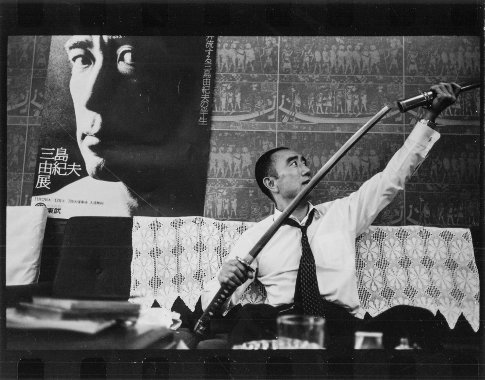三島由紀夫 1970年11月10日 手にしているのは決起の日に持参した銘刀「関の孫六」