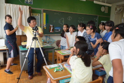今回の写真学習プログラムは、いつもスクールフォトを撮影させていただいている小学校で実施した。初回の授業ではフィルム一眼レフのカメラのシャッター面にトレペを貼ってカメラの原理の解説から撮り方のマナー、被写体の見つけ方について解説。初めて見る上下逆さに映った画像を、「うわ〜っ!」っと食い入るように見つめていた。修学旅行で撮影してきた写真の講評会では、撮影した時の様子や気持ちを楽しそうに話してくれた。また写真の仕上がりをとても楽しみに待っていた児童も何人かおり、フィルムカメラのアナログ的な楽しさも体験してもらえたようだ。