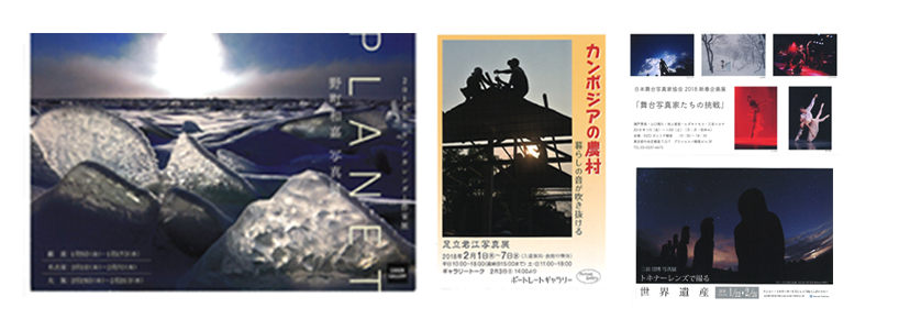 | 池上直哉、瀬戸秀美、三吉ツカサ、山口晴久、他1名 | 舞台写真家たちの挑戦 | 2018/1/5~2018/1/20 | EIZO ガレリア銀座 | |