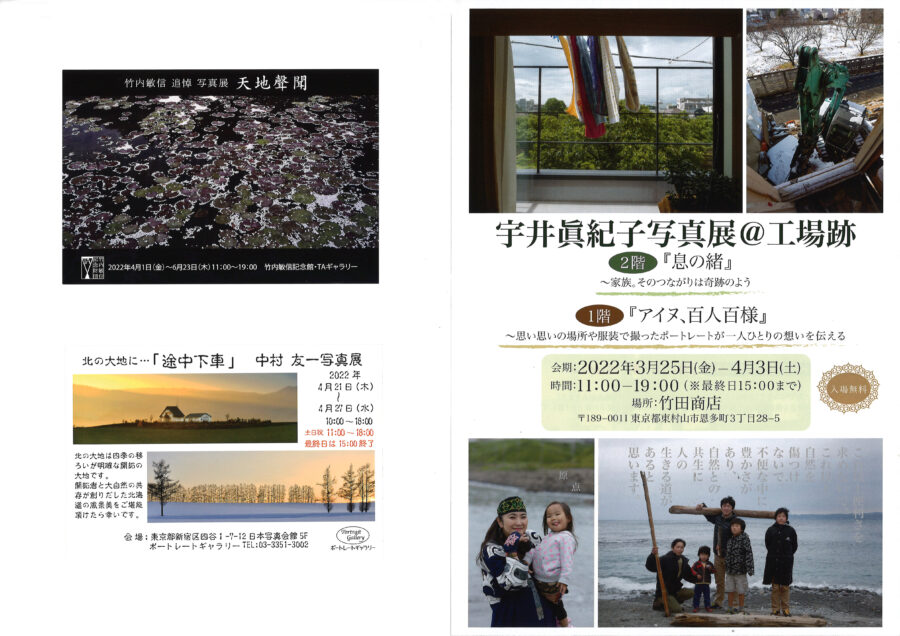 | 宇井眞紀子 | 宇井眞紀子写真展@工場跡 | 2022/3/25〜2022/4/3 | 東村山市・竹田商店 |