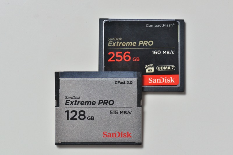 CFast2.0対応カード(手前)と従来のCompactFlashカード