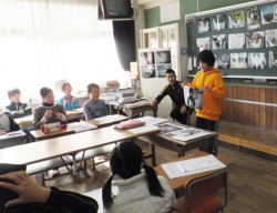 ほとんどの児童はデジカメでの撮影経験があったが、フィルムでの撮影経験は4人に一人くらいだった。1回目の授業では、デジタルとフィルム撮影の違いや、写ルンですの使用注意点を説明すると、視線を講師に真っ直ぐに向けて皆真剣な表情で聞いていた。2回目の四つ切ワイドの写真講評では、皆自分の言葉で撮影の狙いや状況を説明でき、しっかりした内容で感心した。撮影期間は、秋休みであったので、身近な場所から県外の行楽地まで撮影のバリエーションが豊富で良かった。児童から「これからも写真を撮っていきたい」という感想をもらえた。 (記・撮影/村上昭浩)